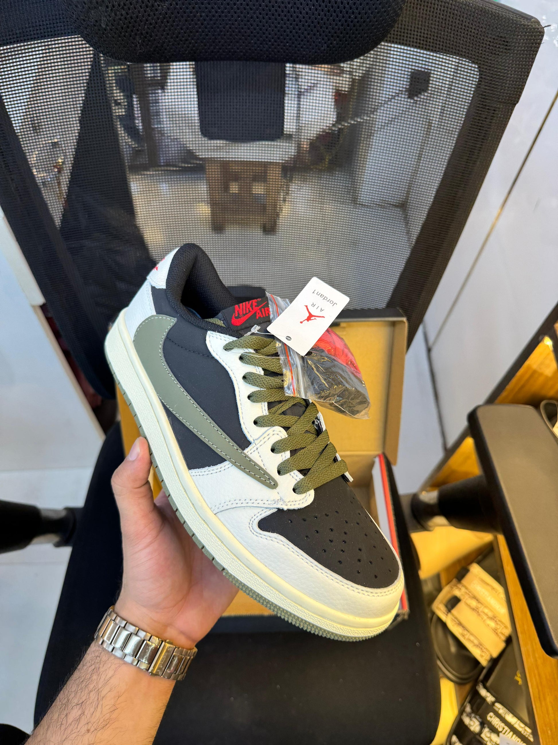 Pair these sneakers with jeans, cargo pants, or shorts for a laid-back look that still makes a statement. The combination of olive, black, and white ensures that these sneakers can seamlessly integrate into a wide range of outfits, whether you're hitting the streets or just hanging out with friends. In conclusion, the Travis Scott x Air Jordan 1 Low OG 'Olive' is a must-have for any sneaker enthusiast or Travis Scott fan. With its unique design, premium materials, and comfortable fit, this sneaker offers the perfect blend of style and performance.